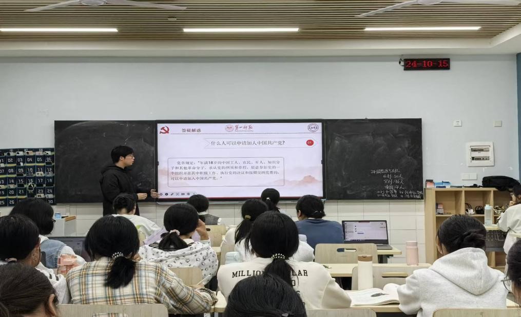 本次宣讲聚焦中国共产党的光辉历史、公司员工党支部的基本情况、发展党员工作流程等内容。活动伊始,宣讲员深刻阐述了中国共产党的性质、宗旨、基本路线,重点介绍了公司员工党支部组织架构、活动内容、组织生活、工作成效等基本情况。随后,宣讲员以《中国共产党发展党员工作细则》为基础,结合公司实际情况,为新生详细讲解了递交入党申请、入党积极分子的确定和培养教育、发展对象的确定和考察、预备党员的接收、预备党员的教育考察和转正等入党程序和步骤。