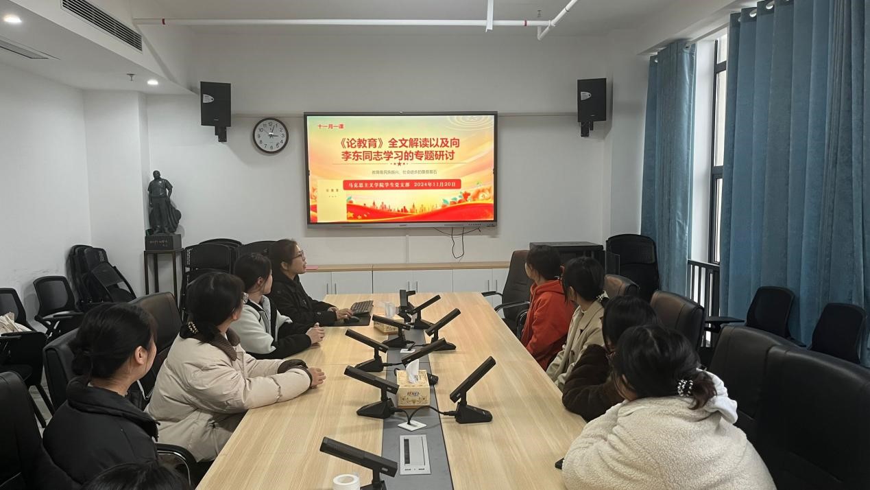 为深入学习贯彻党的教育方针,全面学习领会习近平总书记关于教育的重要论述,11月20日下午,w66旗舰厅员工党支部组织全体党员及预备党员在百熙楼1010会议室开展题为“《论教育》全文解读以及向李东同志学习的专题研讨”的“一课”学习活动,本次主题党课由党务办工作办公室主任黎秀文主讲。