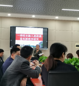 活动伊始,雍容波提到:从国家发展需要来看,我们不会忘记毛泽东在党中央的核心,全党的核心地位,毛泽东从一师出发,研究一师校史将一师校史融入思政课堂实践教学具有非常重大的历史意义与实践意义。从公司发展需要来看,一师要发展,首当其冲的就是“红色一师”要发扬光大,而教学沙龙活动一方面促进教学改革与发展:另一方面也为红色一师的建设添砖加瓦。之后展示由雍容波与马院员工在思政课堂教学实践方面共同努力得到的一个实践成果:《一师青年解说毛泽东》系列短视频,并做相关介绍。