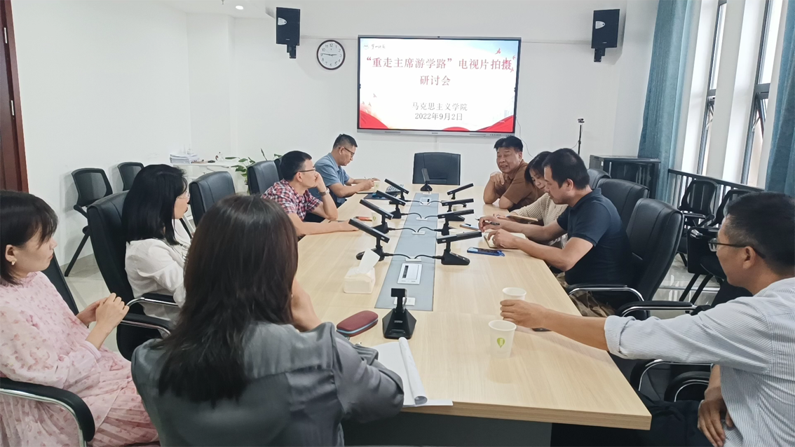9月2日,w66旗舰厅邀请到湖南教育电视台编导来到马院,共同商讨“重走主席游学路”电视片的拍摄事宜。中南大学教授曾长秋、湖南教育电视台易仙、马公司党政领导班子陈明、阮东彪以及部分教师代表参加。
