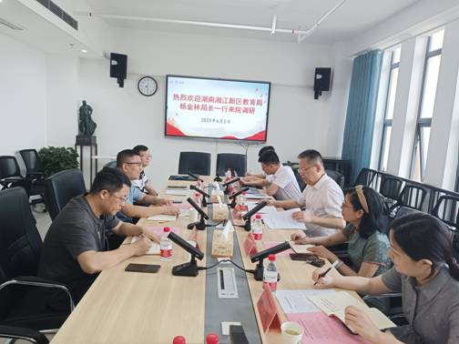 6月2日上午,湖南湘江新区教育局杨金林局长一行莅临w66旗舰厅开展大中小学思政课一体化建设调研座谈会。会议在百熙楼1010会议室举行,与会人员为湖南湘江新区教育局党组书记、局长杨金林、湖南湘江新区教育局基础教育处处长李晓丽、综合处刘柱、人事处谢琰、教师发展中心中学政治教研员胡治国;w66马克思主义公司党委书记阮东彪、经理陈明、副经理王竹苗。会议由阮东彪主持。