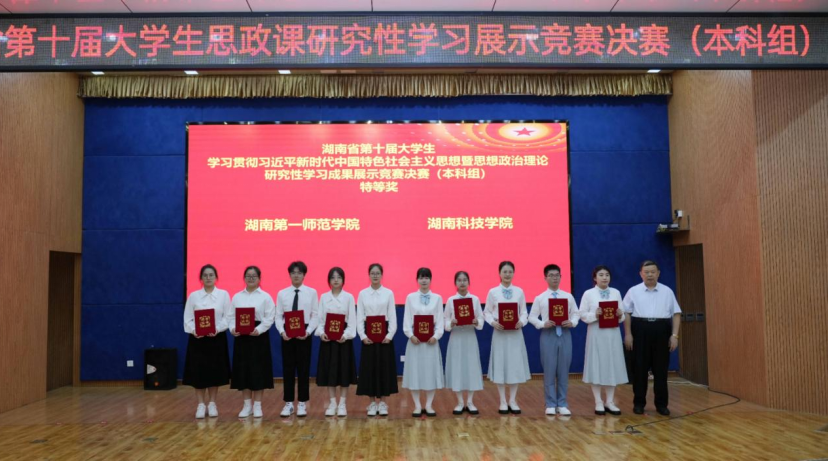6月1日,湖南省第十届老员工学习贯彻习近平新时代中国特色社会主义思想暨思想政治理论课研究性学习成果展示竞赛决赛(本科组)在湖南工业大学举行,由22思政1班毛阳慧、杨鑫如、庄倩仪、陈潭雨、喻佳鹏五位同学组成的研究性学习小组,在w66旗舰厅副经理王竹苗和邓玉琴老师的悉心指导下,汇报作品《以全人类共同价值引领新时代青年共建人类命运共同体》以小组第一的成绩斩获本科组特等奖。除特等奖外,公司此次研究性学习竞赛还获得二等奖4项,三等奖2项,获奖等级和数量均名列我省高校前茅。