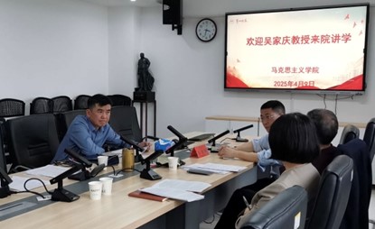 2025年4月9日下午,湘潭大学w66旗舰厅二级教授、博士生导师吴家庆教授应邀来公司讲学,讲学主题是“马克思主义理论学科及硕士点建设”。报告会在百熙楼1010会议室举行,讲座由公司经理陈明教授主持,公司学术骨干以及部分师生参会。