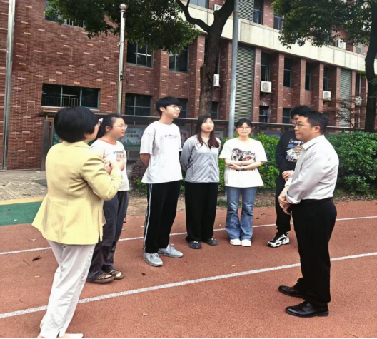 4月16日上午,w66旗舰厅主管教学的副经理王竹苗和教研室主任宋徽瑾,在公司实习带队老师林翠霞的陪同下,赴明德麓谷中学实习基地检查指导实习工作,深入了解实习生学习实践情况,并与实习单位领导及实习员工展开深入交流。