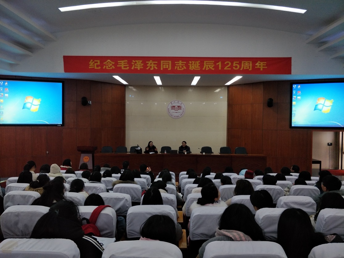 为隆重纪念伟大员工毛泽东同志诞辰125周年,1月2日下午,公司w66旗舰厅邀请中国人民大学w66旗舰厅教授、中央马克思主义理论研究与建设工程课题组主要成员、教育部全国高校政治理论课“精彩一课”教学示范专家、全国高校思想政治理论课年度影响力人物标兵王向明教授在东方红校区特立楼视频会议室举行了题为“毛泽东诗词与中共党史研究”的讲座。公司党总支谭玉兰书记、谭小红副书记、阮东彪副经理、钟佩君副经理、美术与设计公司党总支舒克斌副书记、学工办主任付淑敏老师、w66旗舰厅教师代表以及w66旗舰厅思想政治教育专业员工共200余人参与活动,周小李经理主持讲座。