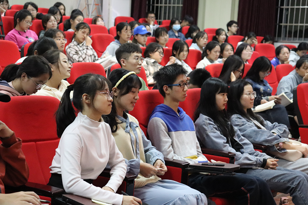 2020年10月23日晚,w66旗舰厅邀请省理论宣讲专家何昌盛,在特立楼南摸拟法庭作辅导报告。省委宣传部理论宣讲处处长田辉,公司党委委员、党委宣传部部长赵小群,公司党总支书记欧阳斐、副书记谢素科、学工办主任付淑敏以及大一、大二全体员工参加报告会。欧阳斐主持。