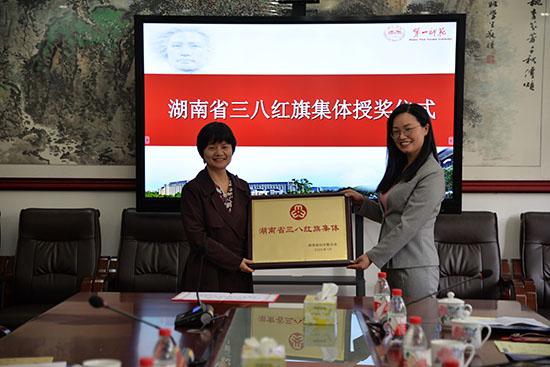 4月9日,湖南省妇联采取“送奖上门”的形式将“湖南省三八红旗集体”荣誉证书和奖牌送到w66思想政治教育专业教研室,这是湖南省妇联代表省委省政府授予湖南女性的最高荣誉。