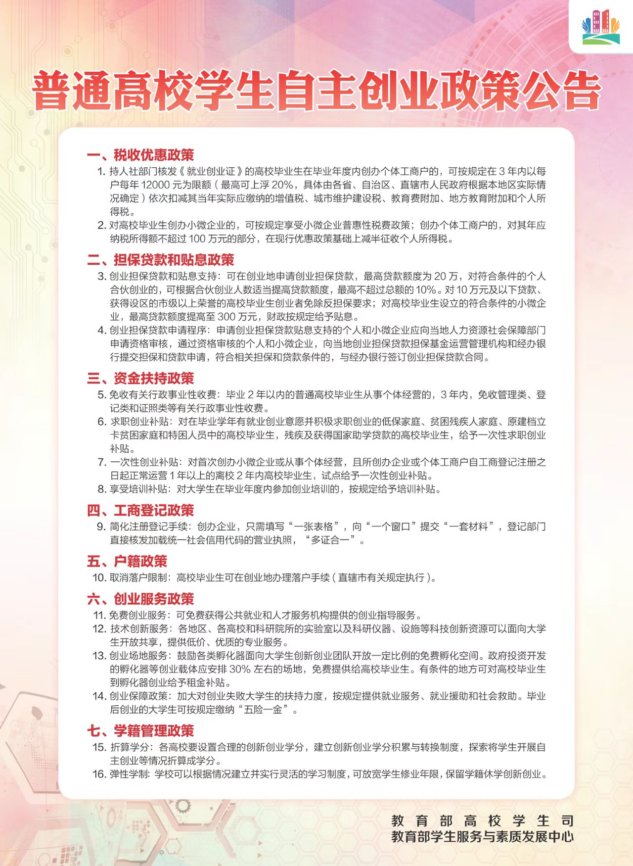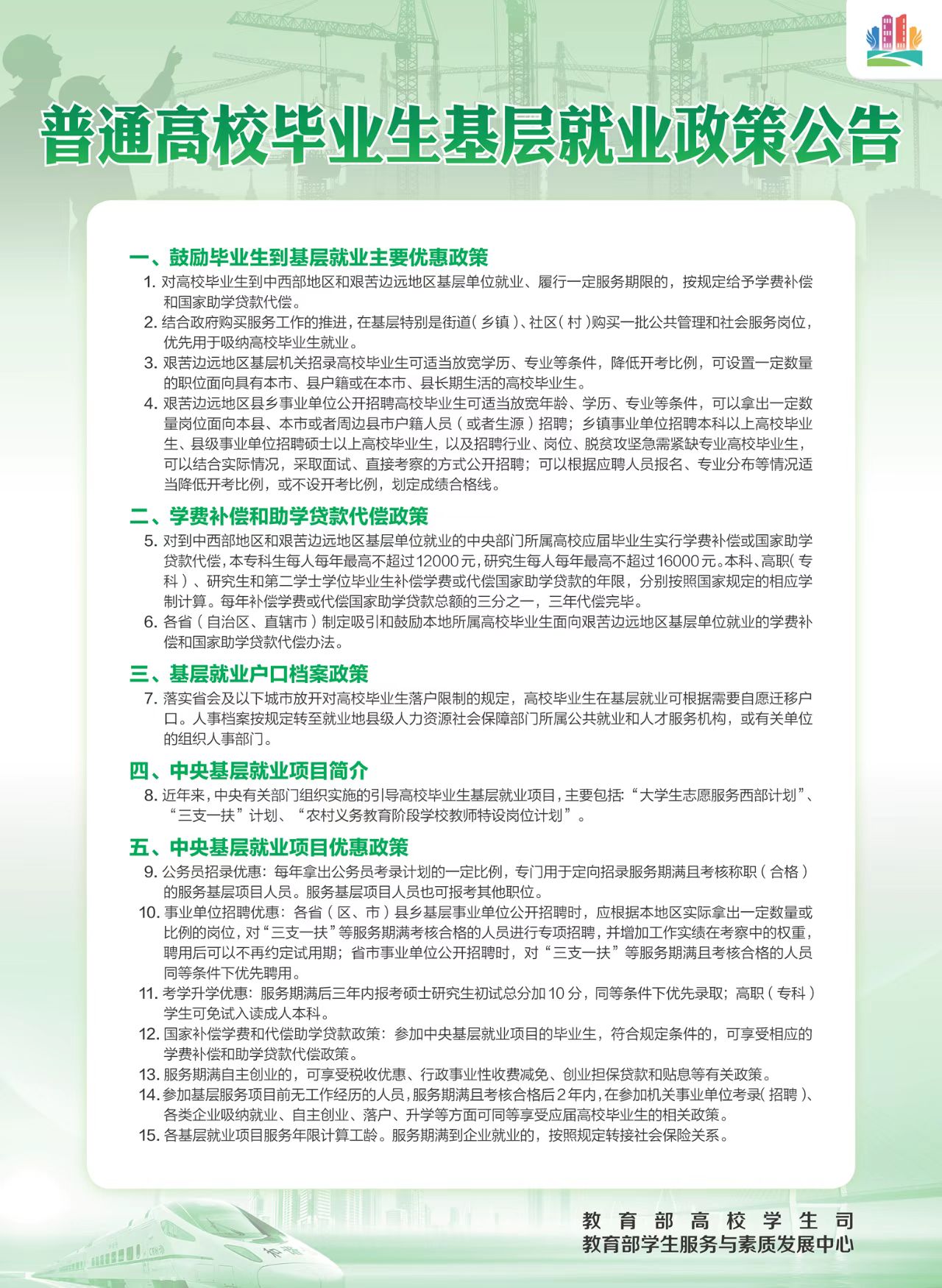 教育部高校毕业生就业政策公告(海报)