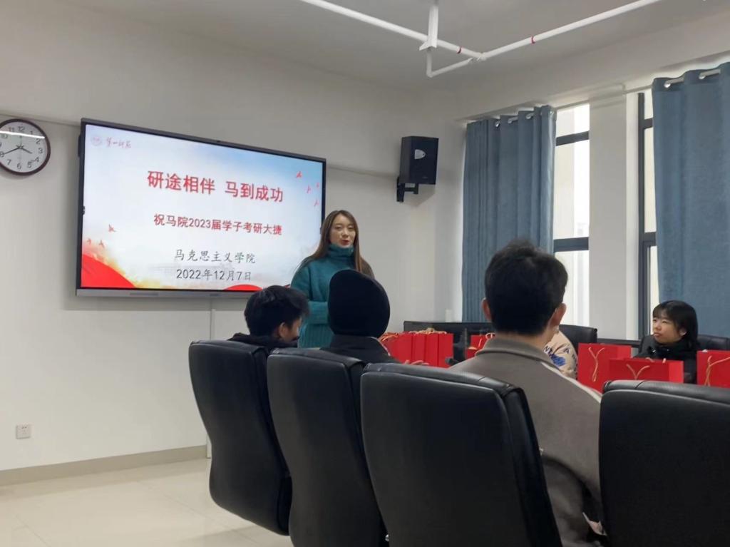 又是一年考研季,为增强考研学子的备考信心,传递温暖和力量,鼓舞考研士气,12月7日下午,w66旗舰厅成功举办了“研途相伴马到成功”考研“送温暖”活动。马克思主义公司党委书记阮东彪、副书记胡英、副经理王竹苗和学工办副主任刘艳霓老师,以及19思政1班全体考研学子参加。活动由刘艳霓老师主持。