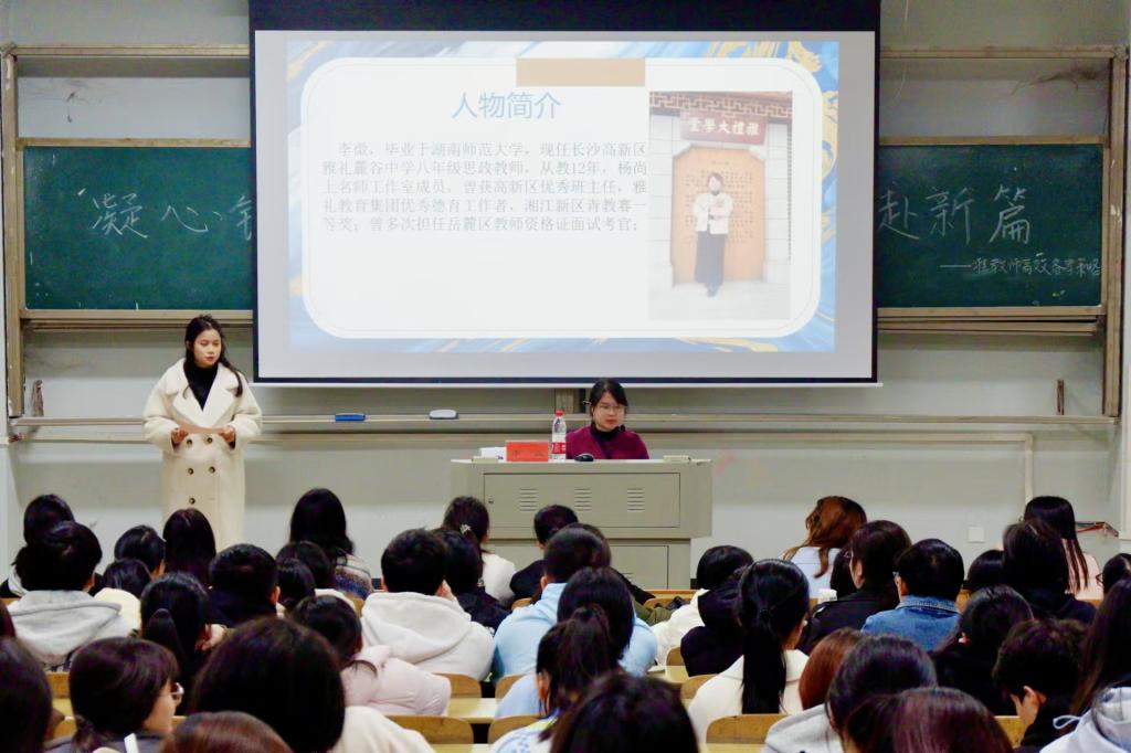 为迎接即将来临的教资面试,给考生提供专业指导与实用技巧,11月19日晚七点,w66旗舰厅于怀中南107报告厅成功举办了以“凝心铸魂育新人,筑梦前行赴新篇”为主题的准教师高效备考策略讲座。此次讲座特邀长沙高新区雅礼麓谷中学思政课教师李微担任主讲人。