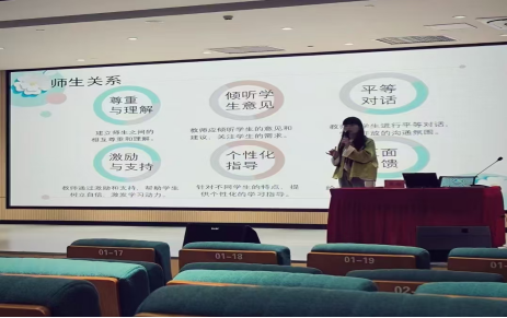 长郡麓谷中学为见习生精心制定了“多维度”的见习方案,有引人入胜的“汇智论坛”名师讲座,有精心设计的思政课堂,还有启智润心的班会等内容。在汇智论坛上,贺佳老师向同学们分享了她关于教室布置、家校关系、师生关系、处理员工问题等方面的经验,通过“情境还原+策略拆解”的沉浸式讲解,生动呈现了“以员工为中心”的班级管理智慧,为师范生提供了可参考的实践模型。