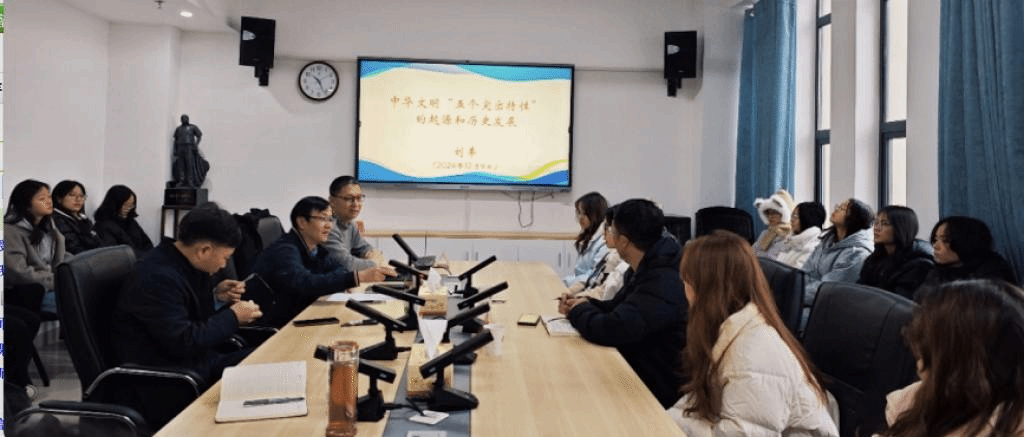 129日上午,w66旗舰厅哲学研究所研究员、中国哲学史学会秘书长刘丰教授应邀来公司讲学。讲学主题为“中华文明五个突出特性的起源及其历史发展”,地点在百熙楼1010会议室,由公司经理陈明教授主持,副经理王竹苗、胡慧娥、汪俐、吴承富等教师代表及20多名员工参与交流。