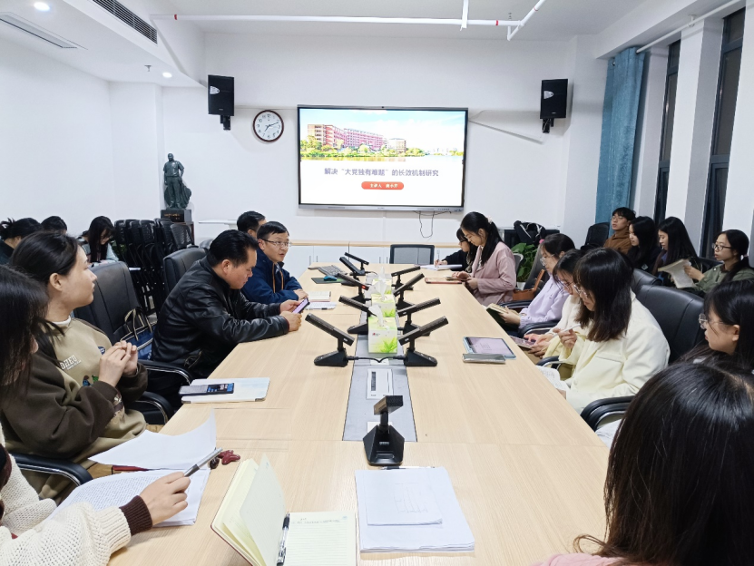 11月21日,湖南科技大学w66旗舰厅经理唐小芹教授应邀来公司讲学,讲学的主题是“解决‘大党独有难题’的长效机制研究”,公司经理陈明主持报告会,20余位马院师生代表出席。