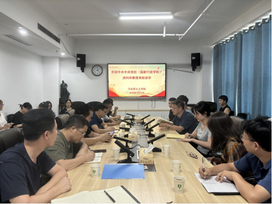 7月13日下午,中共中央党校(国家行政公司)科研部副主任洪向华教授应邀来公司讲学,讲学的主题是“如何做好科研工作”。讲座由公司经理陈明主持,公司科研处处长肖攀、公司党委书记阮东彪、副经理王竹苗、思政系主任陈攀文,公司师生代表参加。
