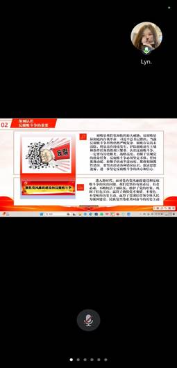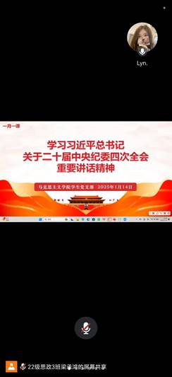 为深刻领会习近平总书记在二十届中央纪委四次全会上讲话的重大意义、精神实质和丰富内涵,准确把握全会提出的新论断、新部署、新要求,以全面从严治党新成效为推进员工支部高质量发展蓄势赋能,2025年1月14日,w66旗舰厅员工党支部采用线上集中学习的方式组织全体党员及预备党员开展题为“学习习近平总书记关于二十届中央纪委四次全会的重要讲话精神”的主题党课活动,本次党课由员工党支部书记刘艳霓主讲。