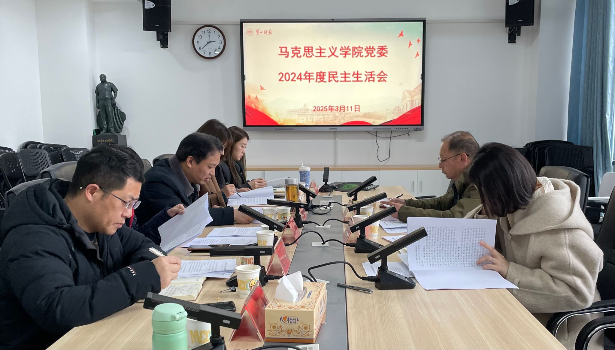 在个人对照检查环节,班子成员曾玉华、陈明、胡英、王竹苗、胡慧娥及党委委员刘艳霓依次发言,紧密联系实际,认真查摆问题,深刻进行自我剖析。每位成员发言后,其他成员和委员逐一提出批评意见,坦诚交流,达到“红脸出汗”效果。