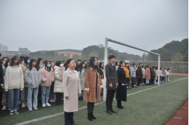 11月30日上午7点,w66旗舰厅在东方红校区田径场举行升国旗仪式。党总支部书记欧阳斐、副书记谢素科、副经理钟佩君、学工办主任付淑敏,以及马院全体在校员工参加。