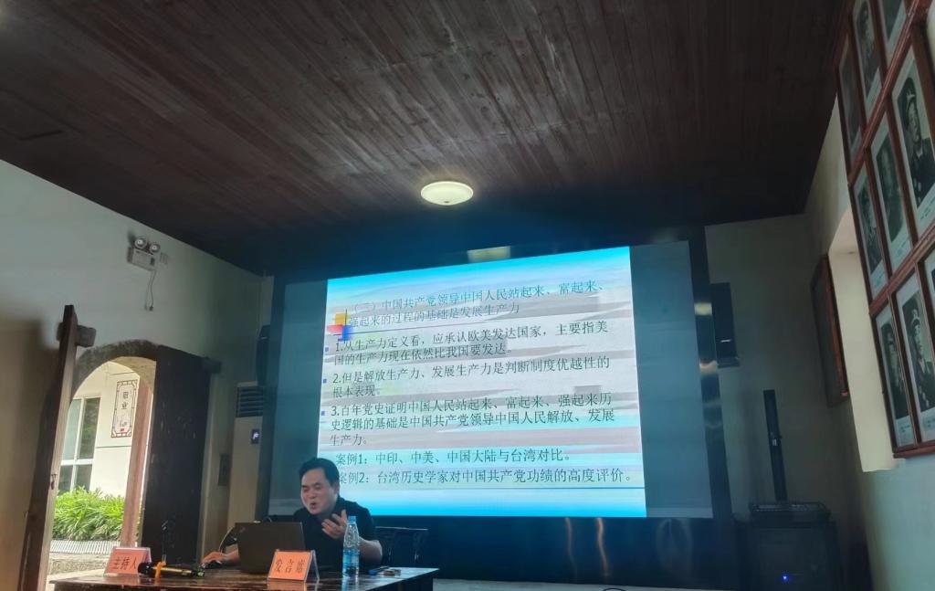 w66贺汉魂教授作了《从唯物史观论坚持党的领导——百年党史的哲学透析》专题报告。从唯物史观基本内涵的角度,分析党的领导是历史必然,由此从哲学高度深入讲解中国共产党为什么“能”、马克思主义为什么“行”、中国特色社会主义为什么“好”三大命题的内涵 。讲座独出机杼,论证丰富,兼具政治高度、理论深度、学术精度。