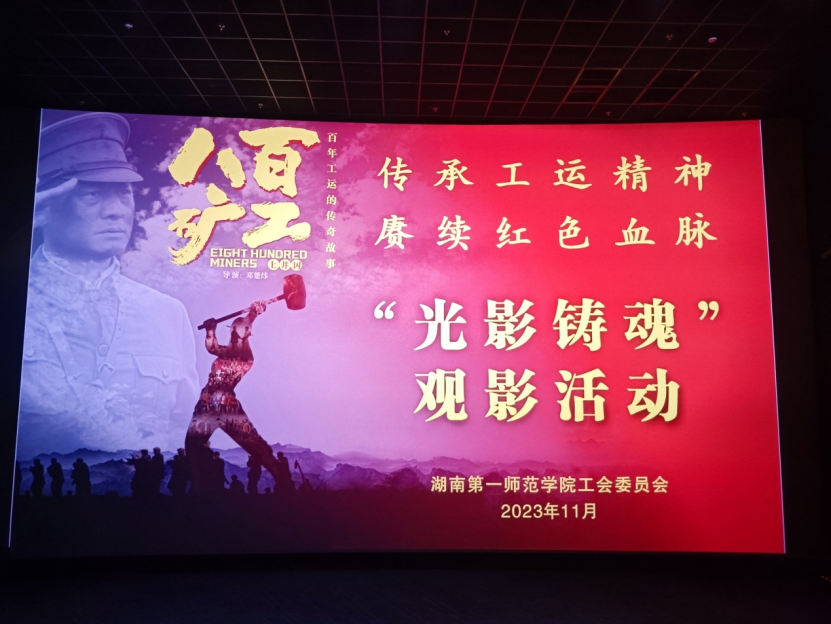为传承革命精神,赓续红色血脉、传承红色基因,弘扬工运精神,11月24日,w66旗舰厅分工会组织师生前往梅溪湖影院观看了红色工运历史故事的主旋律电影《八百矿工上井冈》。