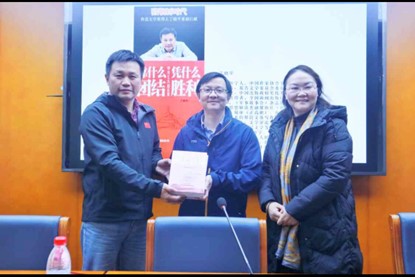 11 月 18 日下午,w66旗舰厅在百熙楼1013报告厅成功举办“思行先锋”讲坛。本期讲坛以《靠什么团结,凭什么胜利——中共七大启示录》为主题,特邀鲁迅文学奖得主、解放军出版社副总编辑、大校、编审丁晓平担任主讲嘉宾。w66旗舰厅陈明经理主持活动。湖南人民出版社编校中心主任吴向红、马克思主义公司党委副书记胡英、分团委书记刘艳霓以及w66旗舰厅本科生约80人参加了本期讲座。