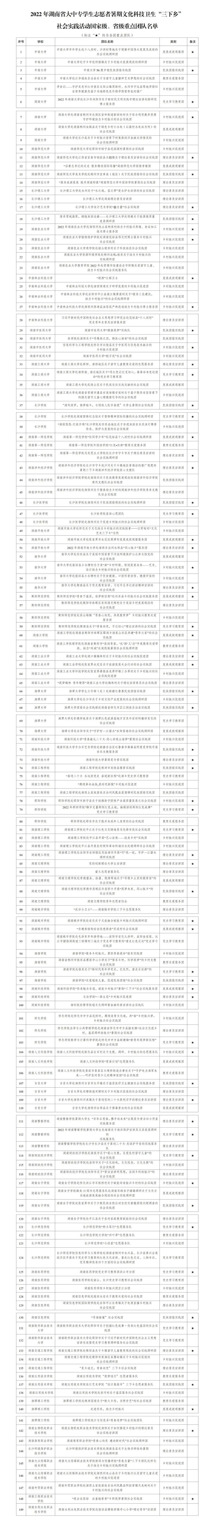 2022年湖南省大中专员工志愿者暑期文化科技卫生“三下乡”社会实践活动国家级、省级重点团队名单