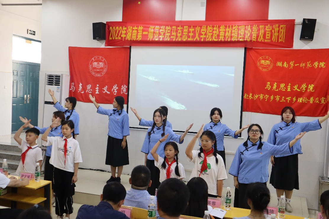 7月中旬,湖南第一师范学w66旗舰厅暑期“三下乡”理论普及宣讲团师生共计34人,前往长沙宁乡市黄材镇开展为期13天的社会实践活动。本次实践活动形式丰富多样,围绕乡村教育、乡村发展、乡村建设、乡村治理、农民农村共同富裕等内容,开展红色课程、普及科学理论、宣讲形势政策、推广普通话等活动,力求为促进“三下乡”实践提质扩面,推动当地乡村振兴建设纵深发展。