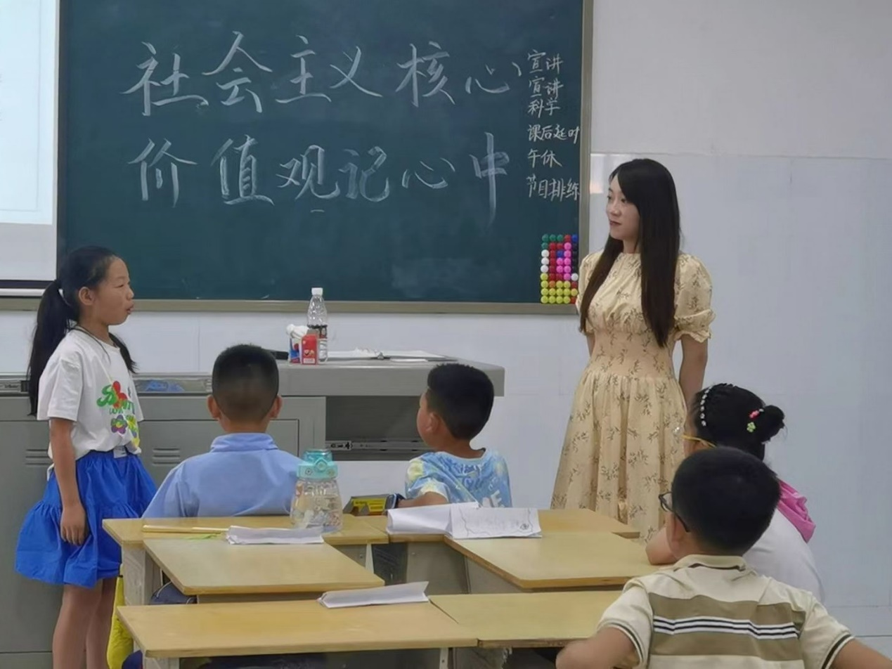 该宣讲团于黄材镇中心小学开启“星火”夏令营,为51名员工传授普通话、自然美育、安全保健、心理健康、社会主义核心价值观等共计16门课程。成员们巧妙地将红色文化融入课程,员工普遍反映“之前从来没有上过这样的课”“收获很多”。作为思想政治教育专业师范生,团队成员努力做好儿童成长的引路人,点燃乡村教育星火,为时代培育社会主义事业接班人。