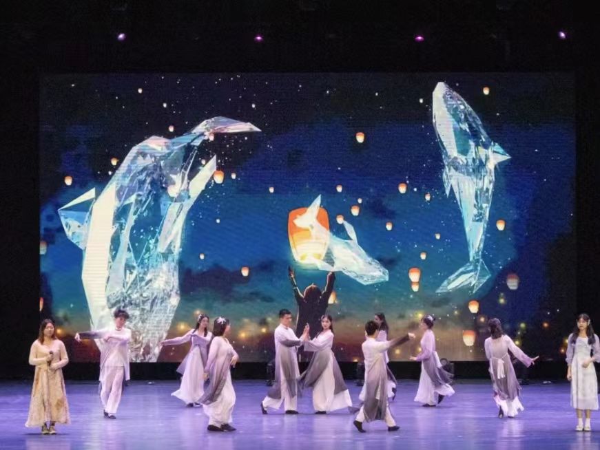 本次晚会节目表演分为三个章节:朝时携谊•初相遇;青葱岁月·展风华;踏歌远航·扬新帆。