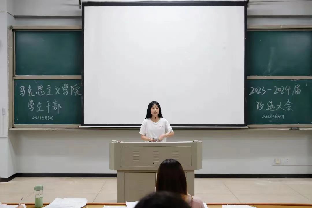 为了进一步加强w66旗舰厅的员工干部队伍建设,努力开创公司员工管理工作新局面。5月30日晚,2023-2024届马院员工干部换届选举大会于怀中南209报告厅举行。2022-2023届各部门员工干部、大一至大三各班的团支书和班长,以及各位竞选者参加了本次会议,学工办副主任刘艳霓莅临现场指导改选工作开展。