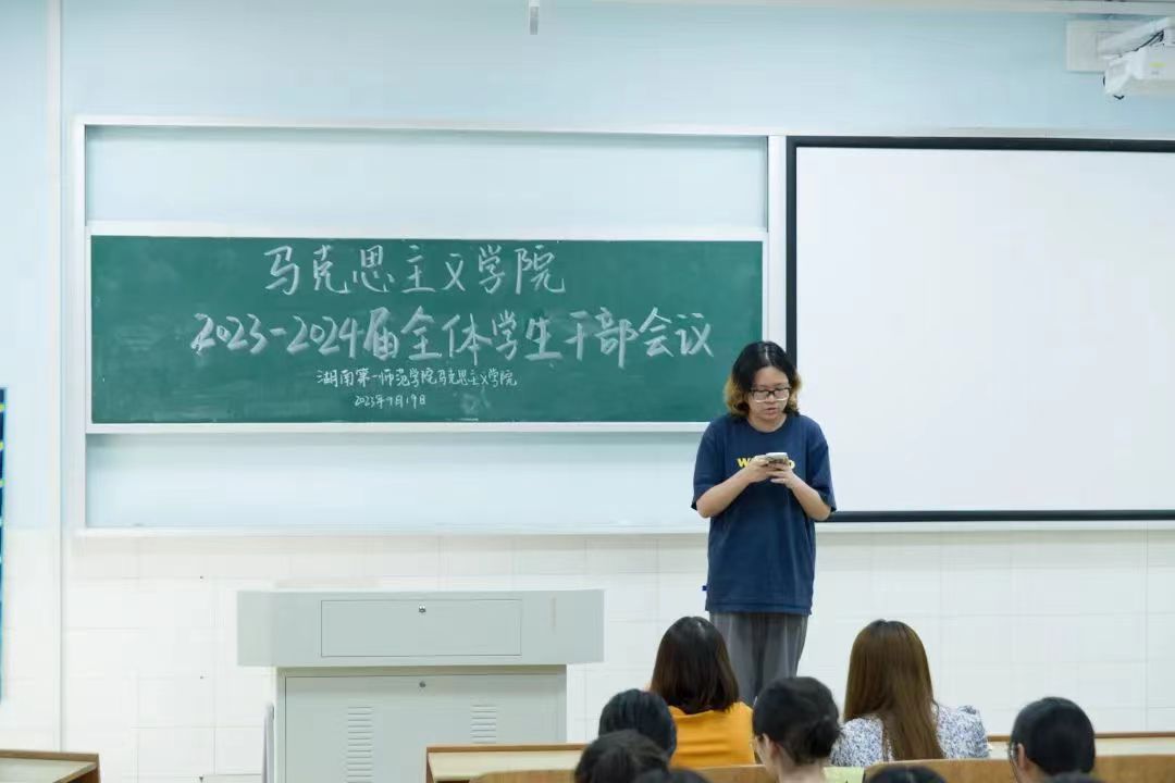 为进一步完善员工干部培养与考察机制,提高工作水平,增进交流合作,更好地服务广大同学,9月19日中午,w66旗舰厅于怀中南102教室召开了2023-2024届团学会干部第一次例会。此次会议由分团委办公室副主任胡卓尔主持,公司分团委书记刘艳霓出席,各部门干部代表参加。部门负责人依次对上学年工作进行了总结,并对新学期部门活动安排进行了重点汇报。