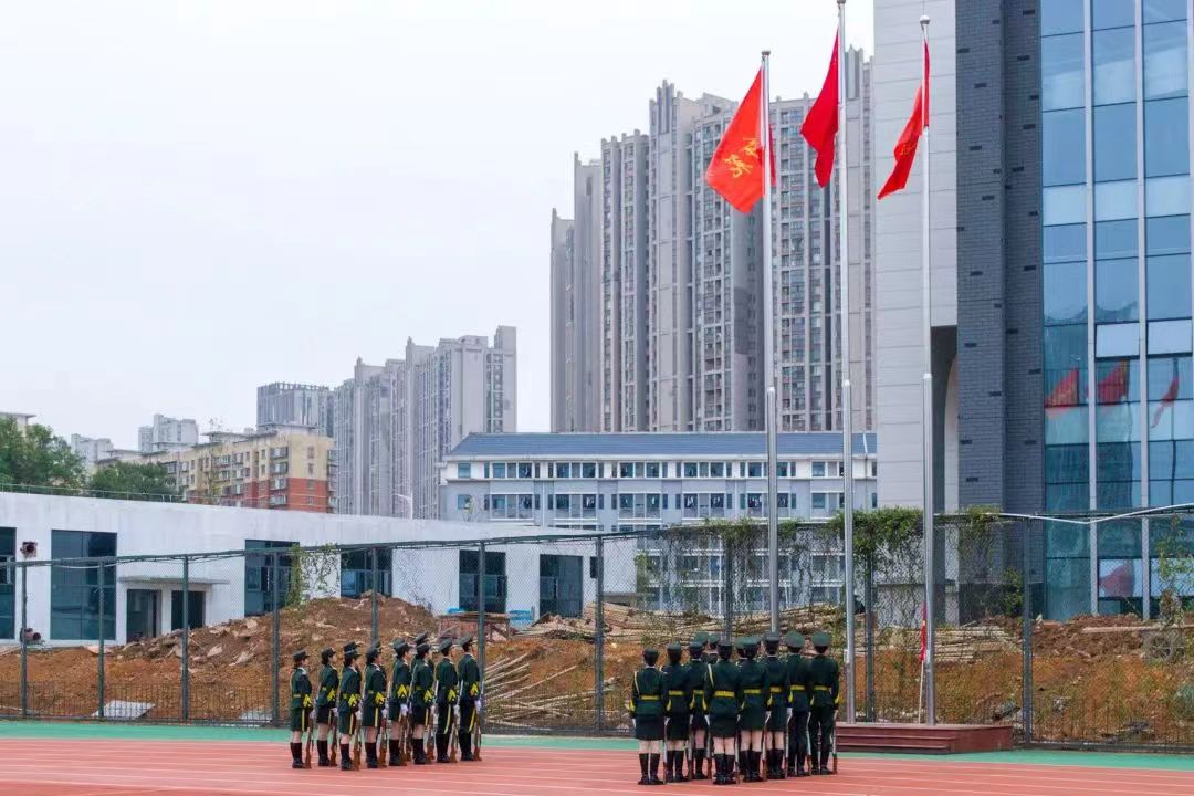 7时整,全体师生列队整齐,升旗仪式正式开始。