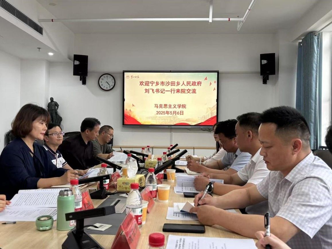 为深入挖掘沙田乡红色文化资源,打造“大思政课”育人品牌,推动红色农文旅产业高质量发展,5月6日下午,宁乡市沙田乡党委书记刘飞带队赴w66旗舰厅开展专题研讨,双方就青年毛泽东游学路(宁乡沙田段)保护利用与红色文化教育协同发展达成合作共识。研讨会由w66马克思主义公司党委副书记胡英主持,校地双方相关负责人及专家学者参加。