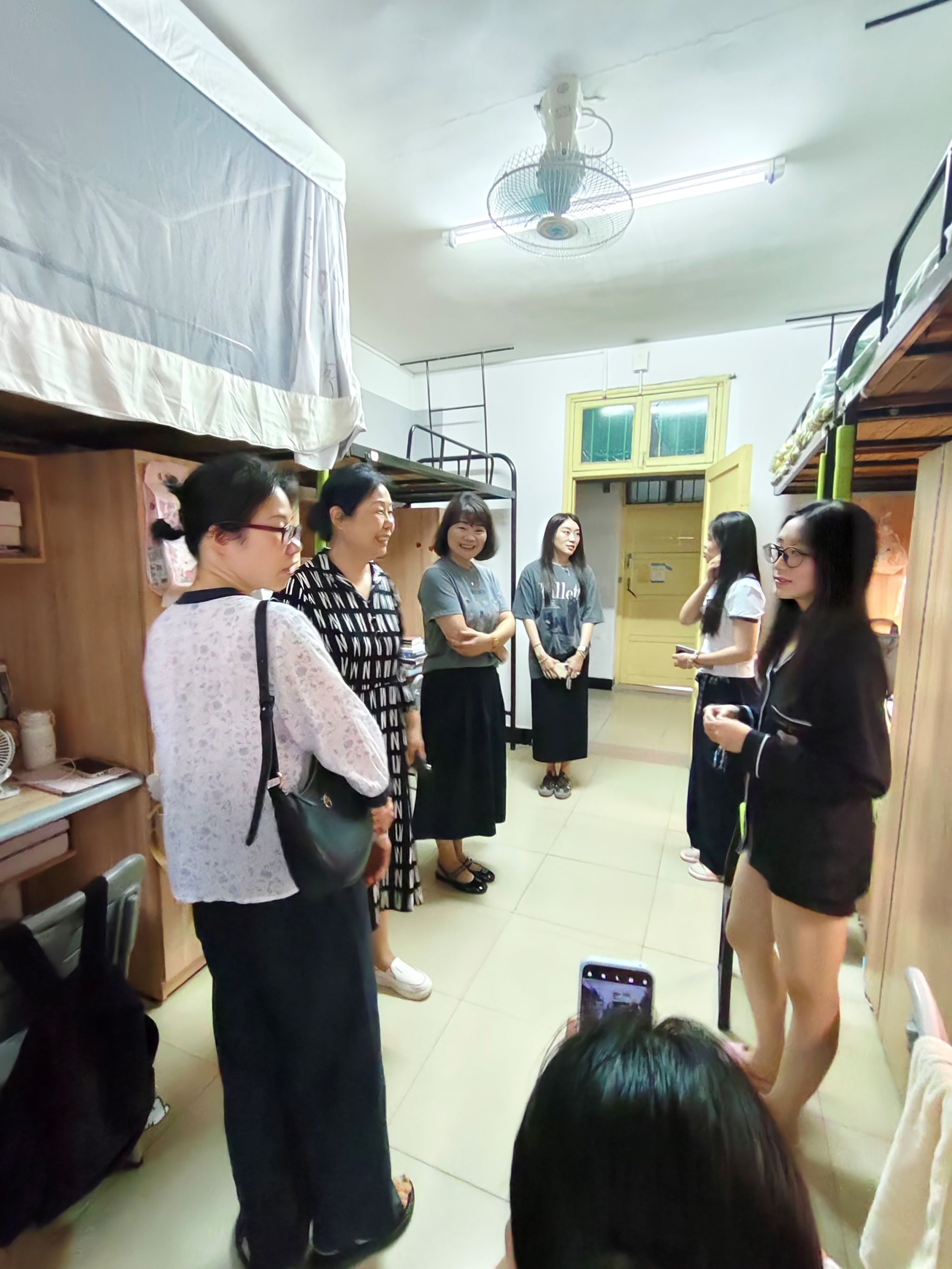 9月7日下午,马克思主义公司党委副书记胡英、副经理胡慧娥、分团委书记刘艳霓、辅导员高爱枝来到寝室进行视察,了解员工到校情况,确保开学报到工作有序落地;随后着重叮嘱同学们,需尽快调整状态回归学习节奏,按照既定计划稳步推进学业,在知识积累中提升综合素质。同时,还向员工普及安全知识,强化大家的安全防范意识。最后,领导老师对同学们送上新学期祝福,鼓励大家以崭新面貌投入学习生活,在新的学期里锐意进取、不断进步,收获成长与突破。(一审:刘艳霓 二审:胡英 三审:曾玉华)