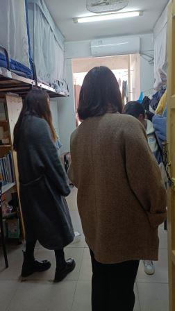 3月7日15:15,马克思主义公司党委副书记胡英带领辅导员刘艳霓检查了11栋所有寝室门贴,对不合格者登记,并反馈给宿管部;走访2018级、2019级、2020级、2021级寝室,对内务整理提出要求,提醒寝室每天要开窗通风,非必要不要前往人口密集、人员混杂、空气污染的场所;保持健康的生活习惯,加强体育锻炼;向同学们强调注意用电安全,及时注意插座附近墙体是否有渗水现象,以免造成意外。