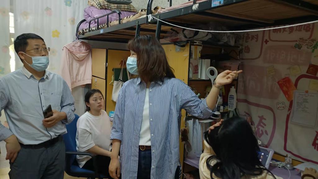 4月9日上午,为加强疫情防控期间员工线上学习管理,保证教学质量,马克思主义公司党委副书记胡英、副经理王竹苗、学工办刘艳霓走访了11栋女生寝室和13栋男生寝室,检查员工网课学习情况,了解员工网课学习的存在问题,提醒同学们要克服困难,增强自我约束力,提升网课学习效果。亲切询问同学们是否有困难,有哪些困难需要公司帮助解决。每到一个寝室,老师们都提醒员工们每天开窗通风,注意寝室卫生,增强日常锻炼,每天早睡早起,保障网课学习期间的身心健康。