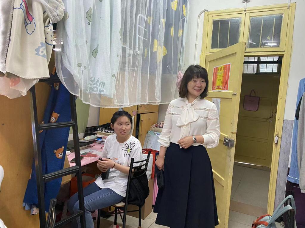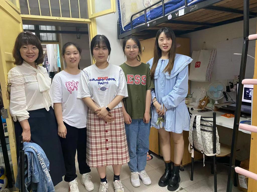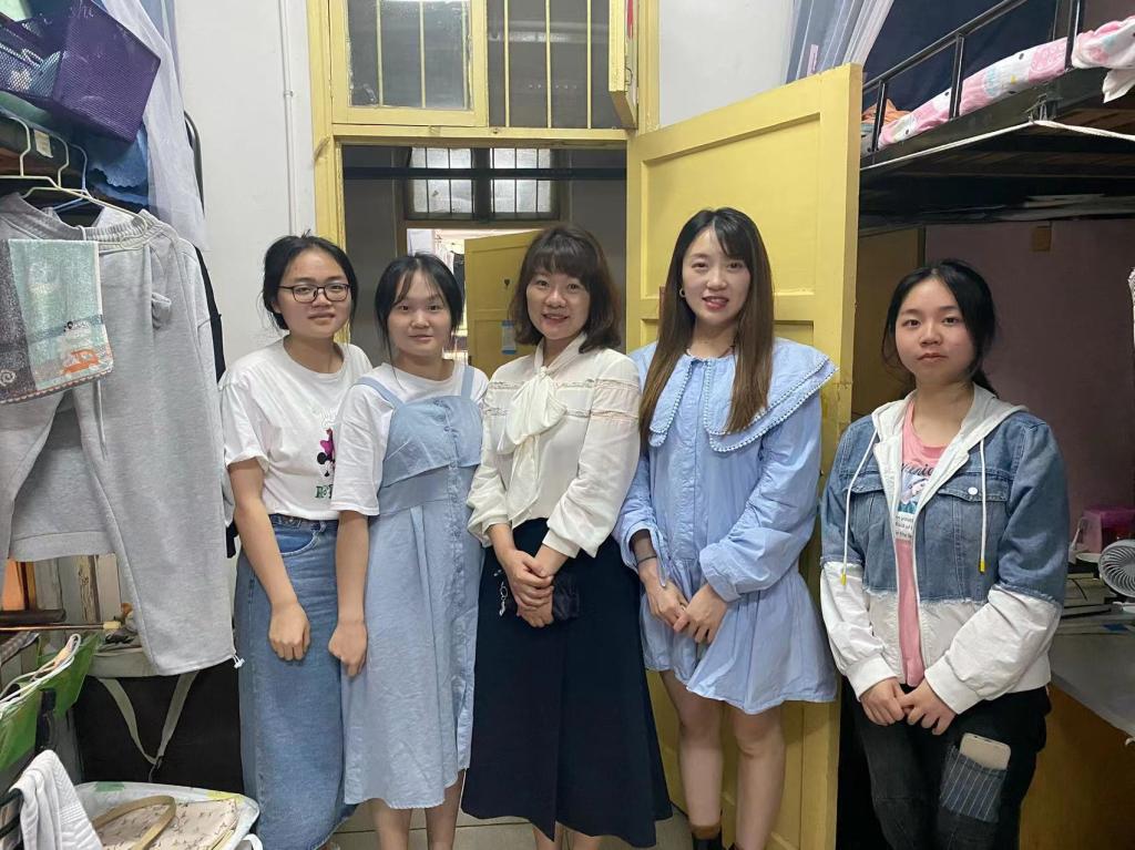 5月25日下午,马克思主义公司党委副书记胡英带领学工办刘艳霓老师到11栋女生宿舍看望同学。针对寝室卫生进行了细致检查,督促同学们按时通风,保持寝室整洁干净;叮嘱同学们期末临近,要制定合理的复习计划,提高学习效率,做好充足准备备考四六级和期末考试。