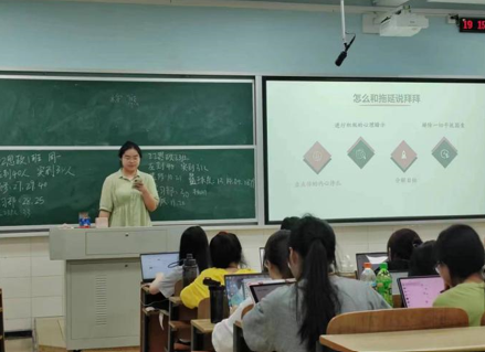 为了促进老员工心理素质提高,普及心理健康知识,提高学习、工作和生活效率, 4月17日晚,w66旗舰厅心育部负责人龚紫妍在怀中南302教室、6栋536寝室开展“风华思政 从心启程”四月心理宣讲活动,本次宣讲活动主题为“和拖延说拜拜”。