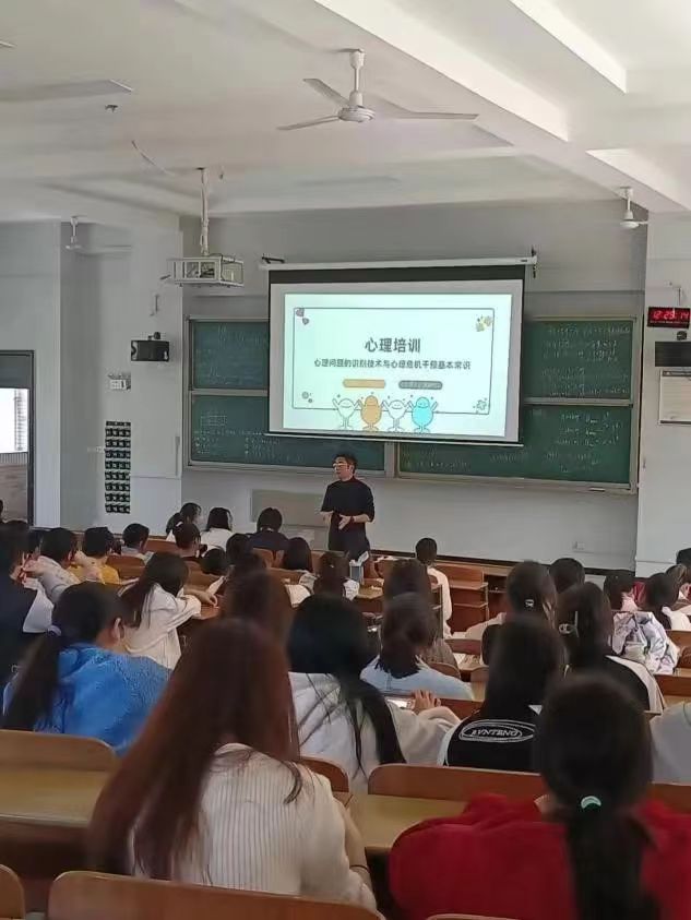 为提升员工干部心理健康工作技巧,增强心理问题识别和干预能力, 3月29日中午,w66旗舰厅于怀中南108教室组织开展以“提高员工心理问题识别和危机干预能力”为主题的培训活动。学工办主任于澎出席,公司各班班长、心育委员和寝室长约百人参加本次培训。培训活动由心育部干部龙丽红主持。