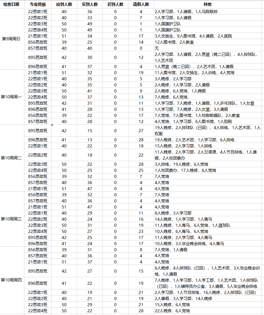 3.个别班级后期自习情况不佳。