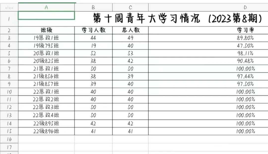 总结: 在本次青年大学习,21思政1班、22思政1班、22思政2班、22思政3班、22思政4班、22级895班、22级896班学习率达到了100%,在这里提出表扬;