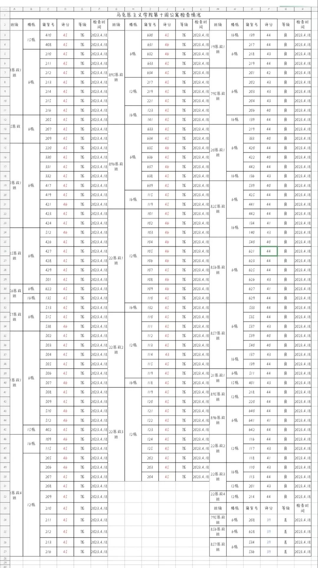 第十周学风、宿舍文明建设检查结果