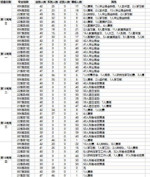 总结: 在本次青年大学习,20思政1班、21思政1班、21级856班、22思政1班、22思政2班、22思政3班、22思政4班、22级895班学习率达到了100%,在这里提出表扬;
