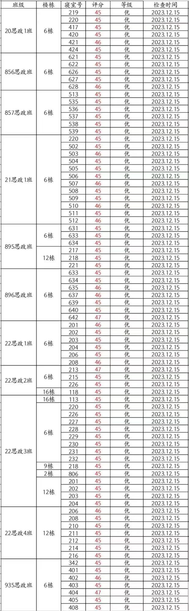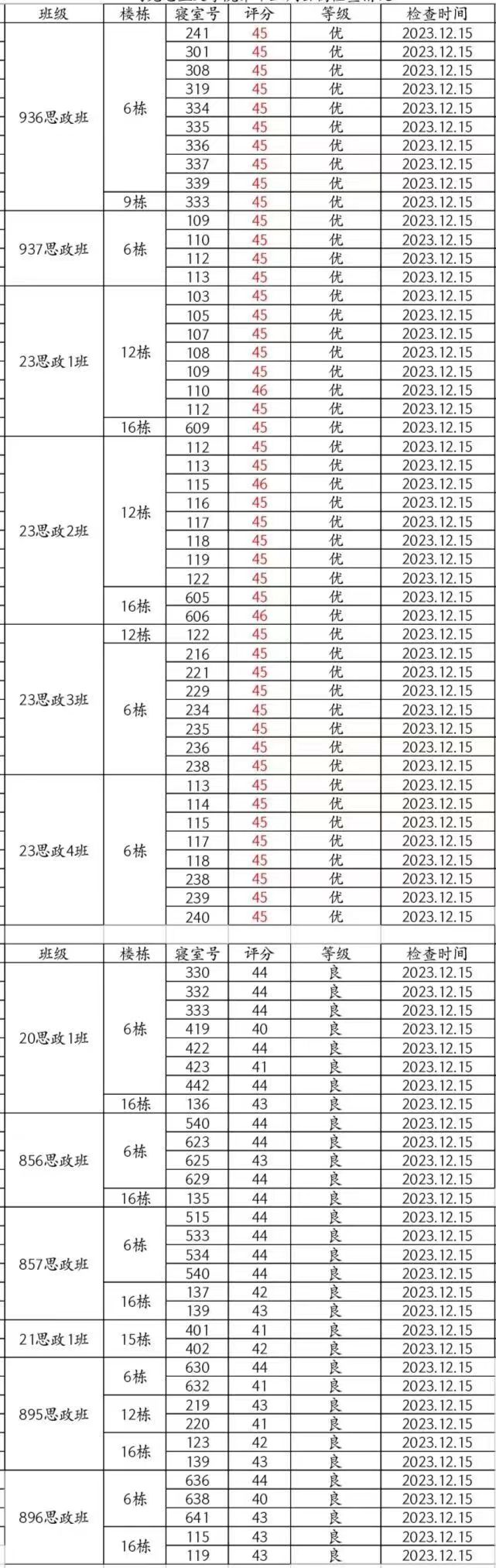 马院第十五周公寓检查情况