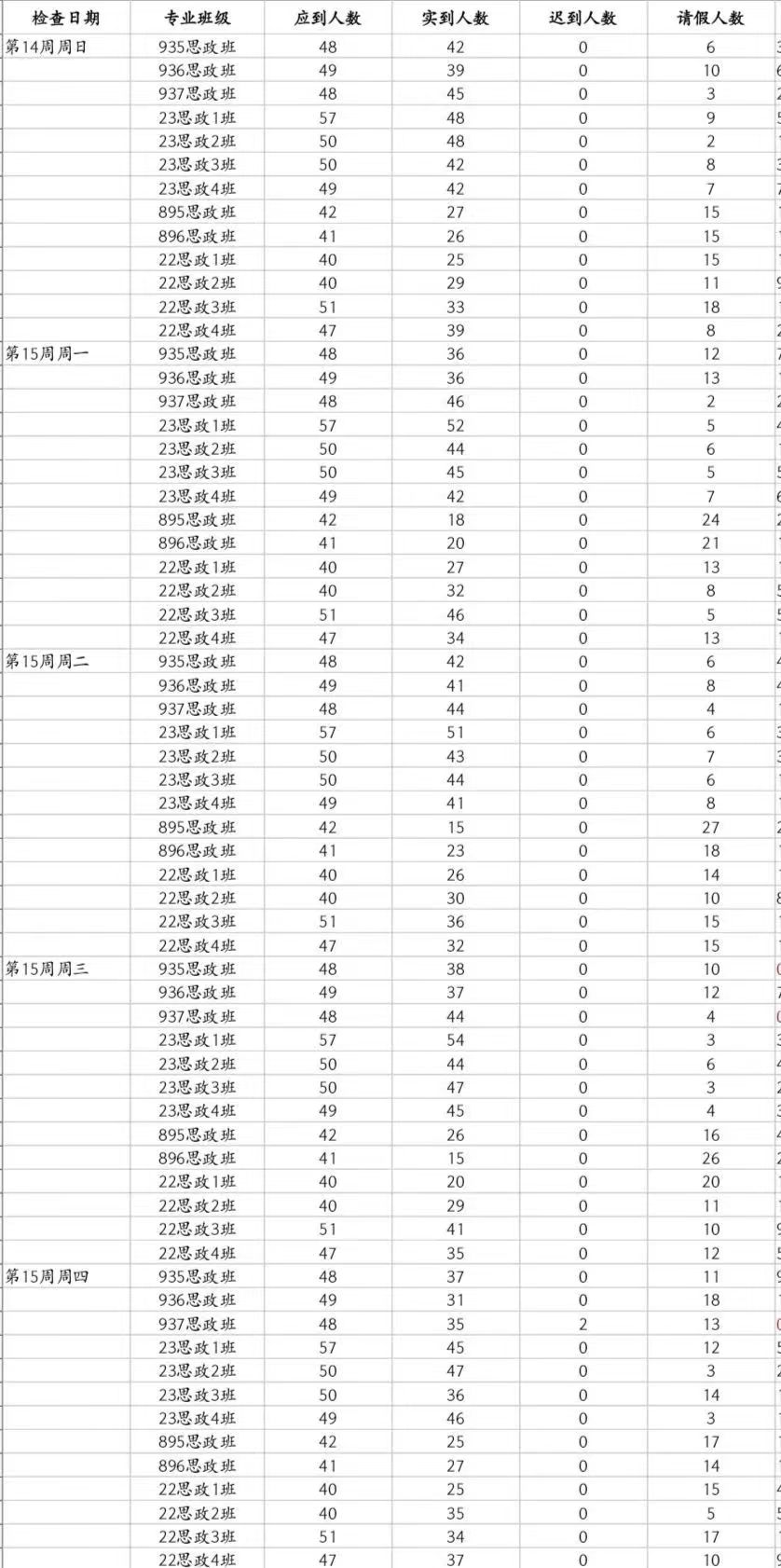 马院第十五周上课检查情况