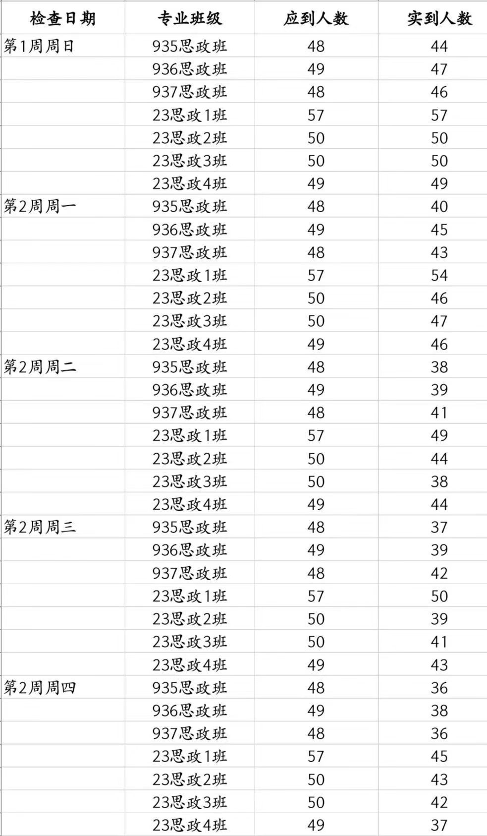 马院第二周晚自习检查情况