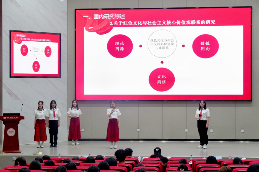 本次比赛面向全校员工,经过初赛和复赛的公平评议,共有11个学习小组进入决赛。决赛分为研究性学习成果展示和答辩环节,参赛小组按照抽签顺序依次进行,由评委进行提问并分别对其表现评分,全面考察选手的临场反应、表达能力和政治素养。比赛中,选手们结合专业优势联系生活实际,用严谨的理论、清晰的思路和艺术性的创新表达,聚焦“大先生、红色文化、中国式现代化、人类命运共同体”等主题,从选题原因、研究综述、研究成果、问题对策、心得体会等五方面进行成果展示。