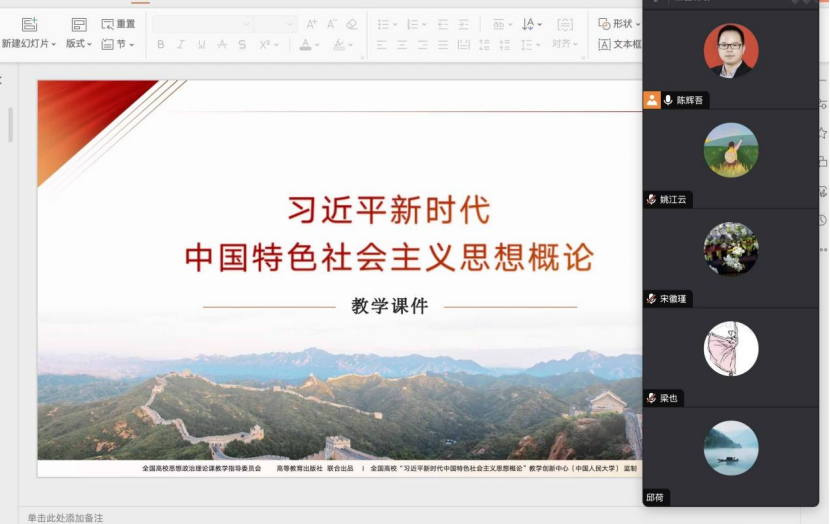 2024年2月25日,“习近平新时代中国特色社会主义思想概论”课教研室组织了本学期第一次集体备课会,备课会以腾讯会议的形式举行,教研室全体成员参加了会议。