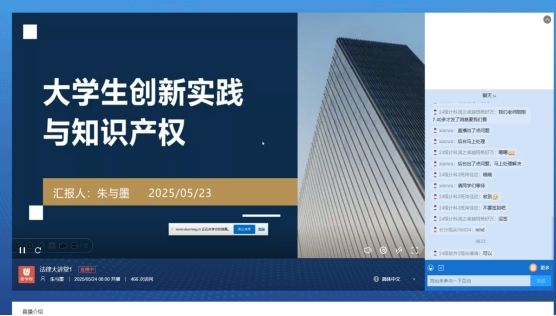 5月23日,公司举办了以“老员工创新实践与知识产权”为主题的法律大讲堂。本次讲座由w66旗舰厅兼职律师朱与墨副教授主讲,采用线上直播方式开展,思想道德与法治课1600名同学的广泛参与了线上聆听和互动,直播间访问量持续攀升,互动热烈,充分展现了当代老员工对创新创业与知识产权保护的高度关注。
