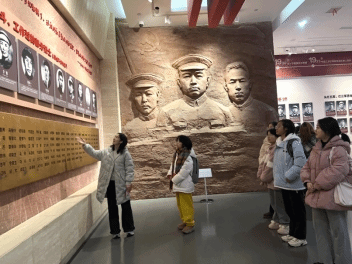 上午8:30,师生们从公司出发前往位于岳阳市平江县的湘赣鄂革命根据地纪念馆。在这里,师生们参观浏览了革命战争时期历史文物,了解了大量关于湘赣鄂革命的历史事迹与英雄人物,深刻感受这段厚重历史和革命精神。在平江起义纪念馆,同学们认真聆听邱荷老师和姚江云老师的介绍,详细了解了平江起义的背景、过程和意义。在凝重、肃穆的气氛中,大家对中国革命先烈的敬畏之情油然而生。