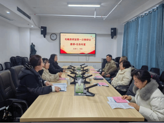 为进一步促进党的最新理论创新成果深度融入教学,提高思政课的吸引力和实效性,充分发挥好毛泽东思想和中国特色社会主义理论体系铸魂育人的作用,2月15日上午8:30在百熙楼1010马院会议室,毛泽东思想和中国特色社会主义理论体系概论教研室全体成员对新学期第一课进行磨课,就“导论”这一部分的内容,进行讨论分析。该部分由教研室主任匡艳主持,雍容波老师主讲。